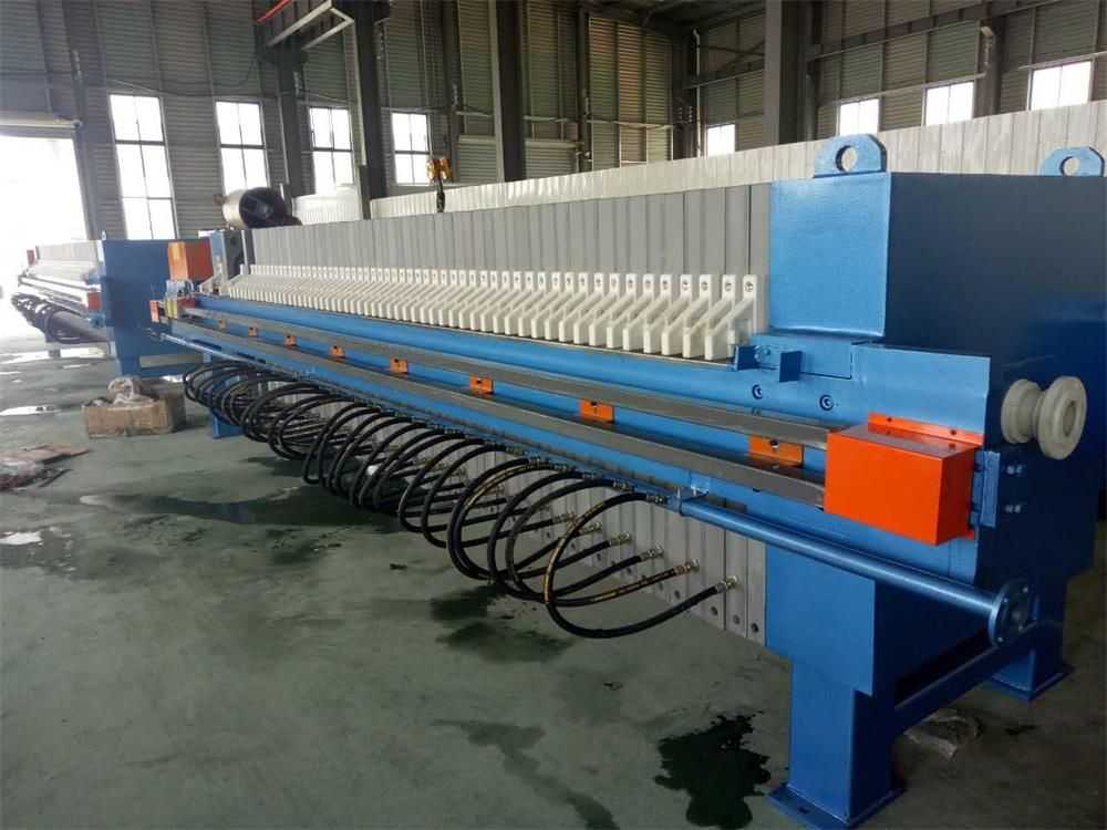 廂式壓濾機是懸浮液進行固液分離的間歇性過濾設備,適用范圍廣,分離效果好,該機采用機、電、液一體式設計制造,結構合理,操作簡單可靠,維修方便,有實現(xiàn)濾板壓緊、進料、洗滌、拉板等各道工序。濾板為增強聚丙烯塑料模壓成型;濾布可根據(jù)過濾介質(zhì)的不同而選擇不同質(zhì)地和密度的過濾布;機架特種鋼材焊接而成,強高、使用壽命長。壓濾機是過濾設備的理想選擇。